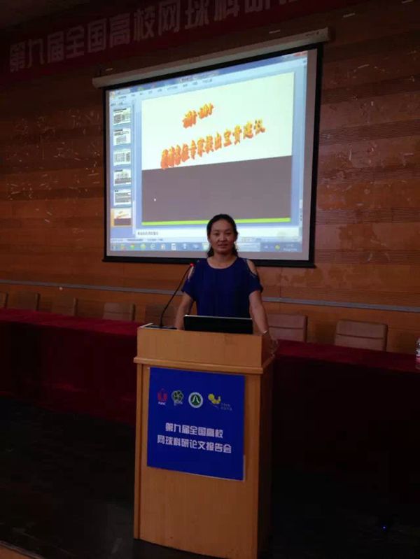 由中国大学生网球协会主办,浙江师范大学承办的第九届全国高校网球科研论文报告会于2014年7月18-21日在浙江师范大学举行。我部青年教师唐青的论文“网球正手上旋球技术动作的表面肌电特征分析”获得二等奖,并在大会上作了专题报告。