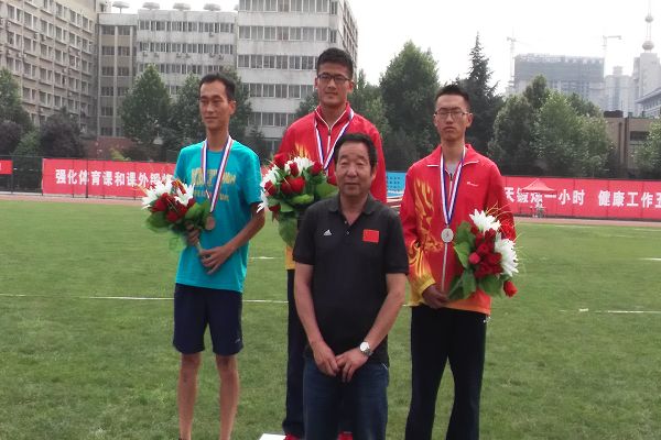 邓杉(中间)获得男子甲组10000米和5000米第一,并打破男子甲组5000米省纪录