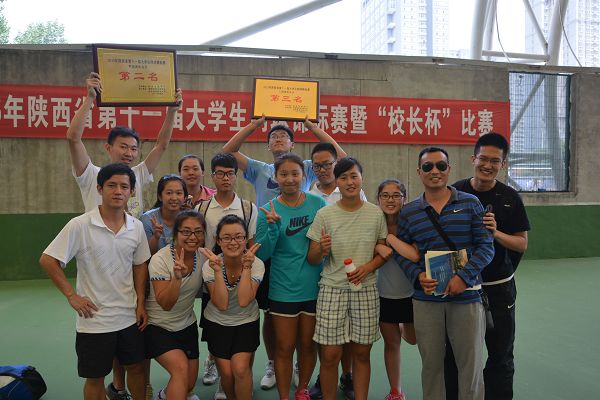 2015年5月20日至24日,由陕西省教育厅主办、陕西省学生体育协会承办的2015年陕西省第十一届大学生网球锦标赛暨“校长杯”网球赛在西安建筑科技大学隆重举行。本届比赛共有25所大学参加,参赛队员达352人,为历届比赛之最。我校网球队一行20人在主教练陈艳教授及助理教练王利民老师的带领下参加了甲乙组团体及单项的比赛。体育部主任吴继东、副主任傅强亲临现场观看比赛并为队员加油助威。
