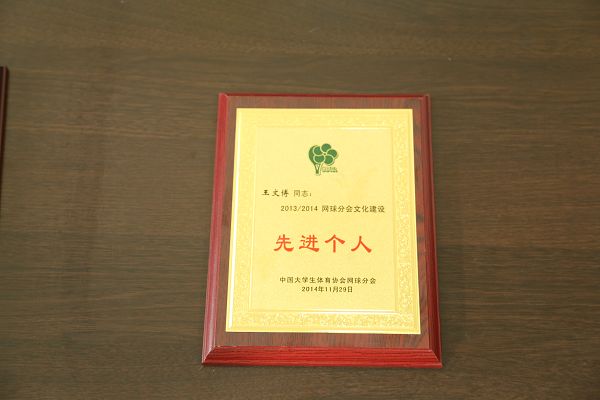 大会对2014年网球分会的工作做了总结,对2014年的先进单位和个人给予了表彰和奖励。我校获得2014中国大学生网球联赛突出贡献奖和网球分会文化建设先进单位。王文博和王斌两位同志获得先进个人。同时,大会宣布2015年中国大学生网球锦标赛将于2015年7月在内蒙古农业大学举行。