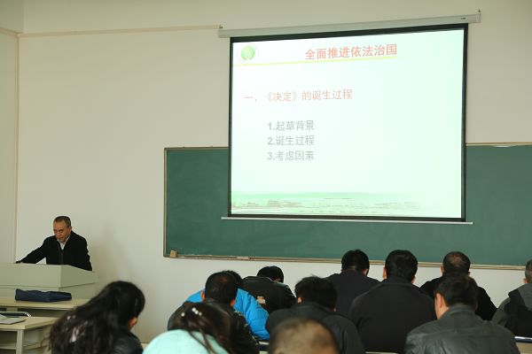 党总支书记魏景刚强调,全体教职工特别是党员干部要认真学习和贯彻党的十八届四中全会精神,将法治观念应用到日常工作和生活中,做到懂法、守法,为学校体育工作再上台阶做出贡献。