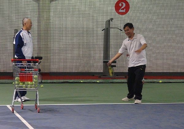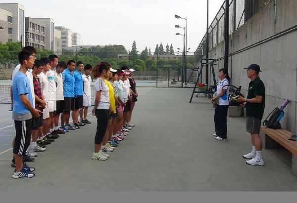 在7天时间里,王福章先生分别对我校校领导、网球教师、网球队的网球学习与训练进行了系统的指导。王导就我校领导对网球的热爱感到无比的欣慰,他说:在高校能有一批热爱网球运动的领导是一所大学的福气,这必将推动高校网球运动的开展;另外,王导就网球初学者的教学步骤和方法,对我校网球教师及部分网球爱好者也进行了培训;更多的时间王导都和我校网球队的队员在一起,从队员正反手基本技术动作到单双打比赛战术,王导都进行了认真的指导。王导和蔼可亲的性格、深厚的基本功、领先的战术思想都给队员留下了深刻的印象。