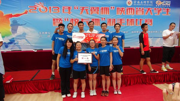 由陕西省教育厅主办的2013年陕西省大学生羽毛球比赛于5月31日至6月2日在宝鸡文理学院举行。我校代表队奋力拼杀,勇夺团体冠军。
