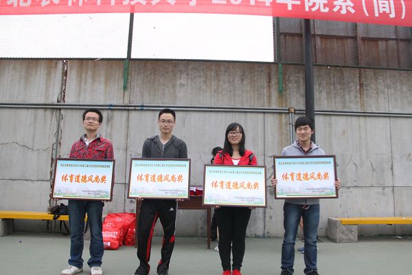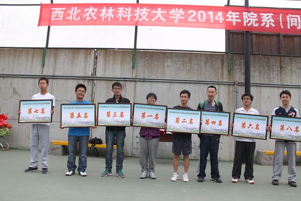 经过3天的激烈角逐,我校2014年学生院系间网球团体赛于4月2日圆满闭幕。获得一至八名的学院是:经管学院、植保学院、人文学院、林学院、机电学院、园艺学院、理学院、食品学院;获得体育道德风尚奖的学院是:信息学院、葡萄酒学院、生命学院、动医学院;获得优秀运动员的是:谢娜(植保)、李志强(植保)、寒日(理学)、李达仁(园艺)、曹蕾(创新)、魏瑞超(动医);获得优秀裁判员的是:高晓红老师、魏婷婷老师、王诗轩同学、梁煜同学。