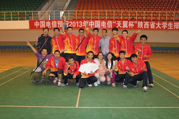 1比0,2比0,3比0。。。8比0,9比1。。。15比6,我们夺冠了,从2011年组队的第四名,到2012年的亚军,到2013年的冠军,校男排三年三级跳,一步步走到了巅峰,尤其是今年面临全部主力都毕业的最困难时刻,这个冠军更显的弥足珍贵。这个冠军是三批队员不懈的努力,是排协俱乐部联赛的功劳,更得益于体育部给予的巨大支持和所有关心男排发展的每一个老师和同学。决赛当日,学校马建华副书记还亲自前来给队伍加油,学生处王德连副处长、体育部王文博主任、魏景刚书记、傅强副主任、群体室王斌老师等,还有学校校友会胡安劳常务副秘书长以及西安校友会常中华副会长等众多校友也前来为加油,校友会还为队伍带来了慰问品。体育部雷蕾老师也前来助阵,常辉和王艳老师不能前来,专门托人带来了慰问品。
