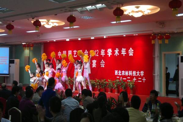 10月20日下午18:00,“中国园艺学会2012年学术年会”欢迎晚会在田园山庄举行。我校健美操队参加了这次晚会的表演。这次晚会总共六个节目,健美操队作为压轴节目将这次晚会拉到了高潮。他们激情四射,活力无限,在舞台上尽情的舞动着,与会的各位学者们的激情也被点燃。表演结束,大家掌声四起,露出了满意的笑容。