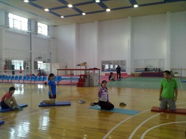 3月21日下午天空飘着小雨,按照训练计划,网球高水平运动队在篮球馆进行体能训练。体育部健美操赵文红老师义务参与到网球队训练中,在《最炫民族风》和《江南Stely》动感音乐背景下,赵老师带领所有队员进行了20分钟的热身。队员们被赵老师优美的身姿、标准的动作、不厌其烦的指导深深地吸引着,怀着愉悦的心情开始了本节训练课并圆满完成了训练任务。最后赵老师和队员们一起进行了“瑜伽”牵拉活动,队员们乐在其中又达到了放松的目的。