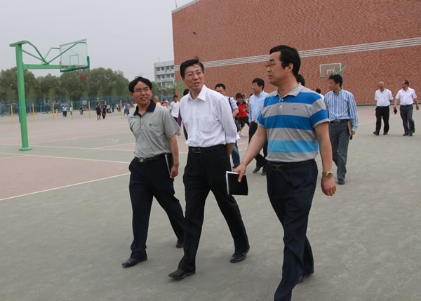 孙其信校长实地察看北校区体育场馆,了解其运行和管理情况,了解体育部基本情况、存在问题和发展思路,听取了教师代表对学校体育工作发展的意见和建议。