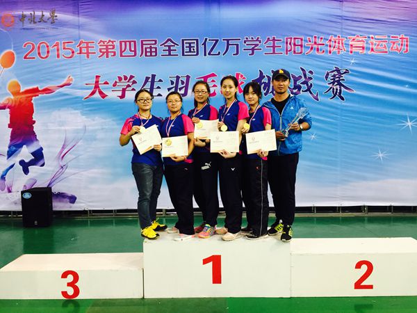 10月17-18日, “第四届全国亿万学生阳光体育运动大学生羽毛球挑战赛” 在山西太原举行。经过激烈争夺,我校代表队荣获女子团体冠军。