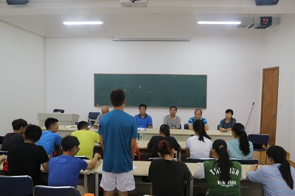 9月16日下午,体育部在小球馆二楼会议室召开了2015级网球高水平运动员见面会。出席会议的有体育部书记魏景刚、主任吴继东、副主任傅强、副主任马文军、网球队教练陈艳、王利民、2015级新生队员及所有在训队员,会议由陈艳教授主持。