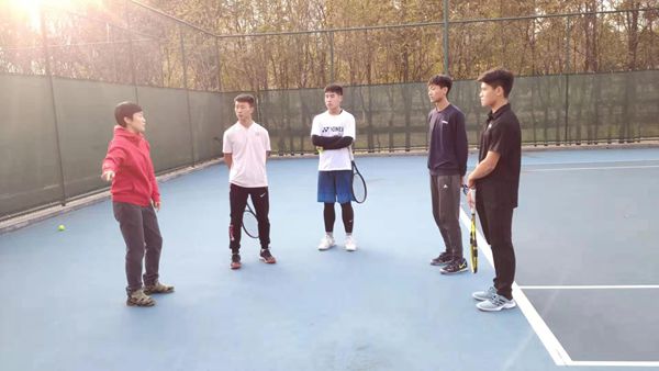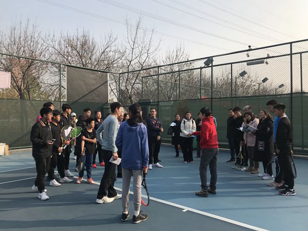 招生工作现场,陈艳副主任采用PPT汇报方式从我校发展、办学理念与特色,运动队管理模式、竞赛成绩及发展目标等方面向相关负责人、教练员及即将毕业的学生运动员进行了宣讲,并现场进行网球训练技术指导工作。