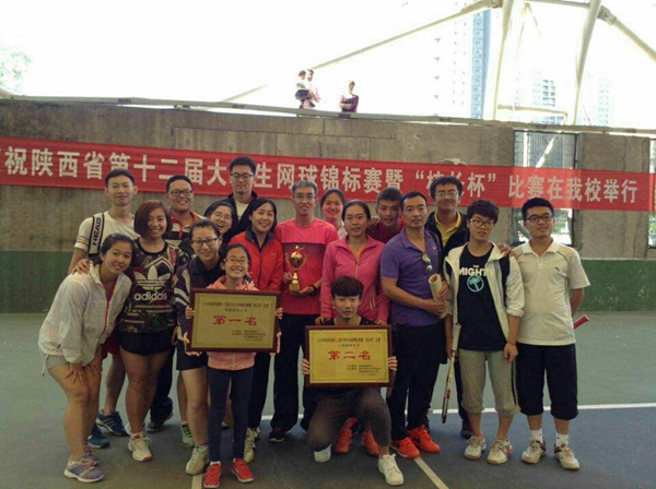 我校大学生网球代表对分别参加了男、女甲组、乙组四个组别以及十二个小项的比赛。经过全队顽强拼搏,共同努力,最终获得甲组女子单打,双打,团体三个项目的冠军,男子单打、双打、团体季军,并以总分第一的成绩荣登陕西高校之首;乙组女子单打、双打、团体亚军,男子团体亚军,双打季军,总成绩名列第二。