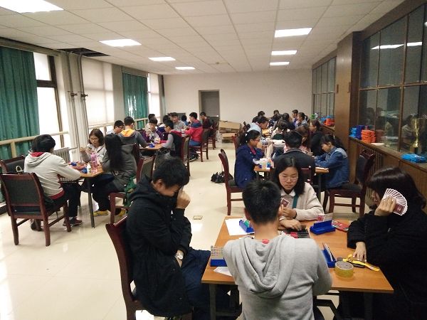 为了丰富我校大学生的课余生活,发展大学生的兴趣爱好,由校体育部主办,校桥牌协会承办的2016年新生桥牌双人赛10月23日在北校区田径场二楼桥牌室举行。