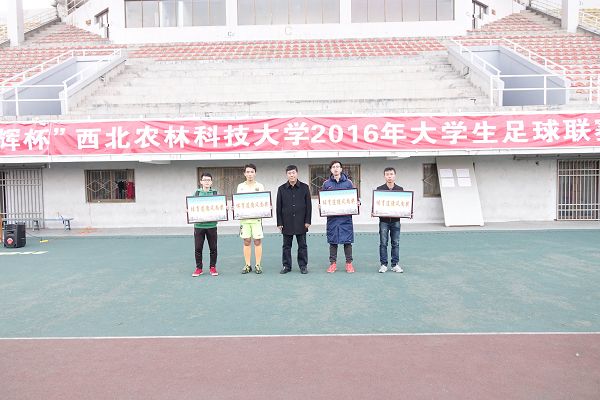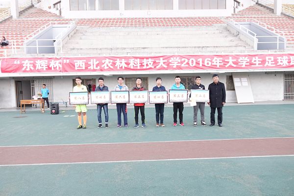 经过小组赛和淘汰赛两个阶段共25天的激烈争夺,“东辉杯”西北农林科技大学2016年大学生足球联赛圆满落幕。教工队和动科学院并列冠军,第二到第八名的队分别为:食品学院、理学院、农学院、风景园林艺术学院、水建学院、林学院、信息学院;理学院、经管学院、信息学院、资环学院获得“体育道德风尚奖”;动科学院的陈宁博同学和教工队的窦龙老师获得 “最佳运动员”;东辉驾校获得“最佳合作奖”。