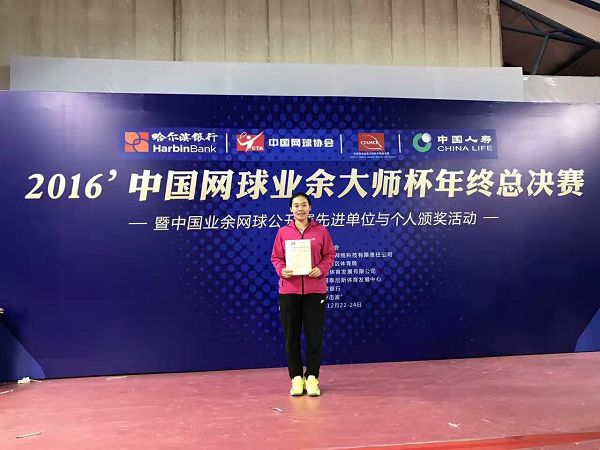 2016年12月,中国网球业余大师杯总决赛,女单第五。