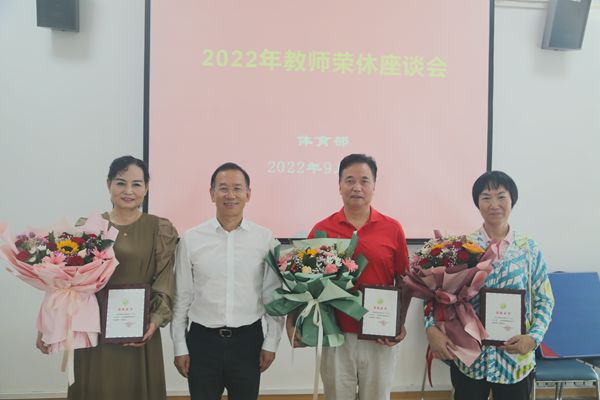 校党委副书记闫祖书认可和肯定了退休教师为我校建设发展作出的贡献,他指出:近年来,体育部教师在落实牢固树立习近平总书记“健康第一”思想做出了重要贡献;四位教师光荣退休体现了他们对学校和杨凌的感情,是爱国、爱党、爱校的具体表现,他们取得的成绩和荣誉是对在岗教师一种最好的教育;希望荣休教师在不同的人生阶段继续保持豁达、阳光、向善、向上的心态,在退休生活新舞台上老有所学,老有所乐,老有所为,享受精彩退休生活的同时,也为服务学校立德树人和双一流高水平大学建设继续贡献智慧和力量!希望体育部能够发挥老中青传帮带的作用,关心、关爱退休教师的生活,用实际行动温暖荣休教师的心;习近平总书记提到“一个人遇到好老师是人生的幸运,一个学校拥有好老师是学校的光荣,一个民族源源不断涌现出一批又一批好老师则是民族的希望”。闫书记希望体育教师要将立德树人根本任务转化为对工作的热情,一切围绕学生、一切为了学生,为党育人、为国育才,用行动促进“五育并举”发展。最后闫书记代表学校向荣休教师献上鲜花表达崇高的敬意和诚挚的祝愿,祝愿荣休教师继续发光发热,生活更加出彩;希望在岗教师珍惜岗位,共建体育部和谐大家庭。