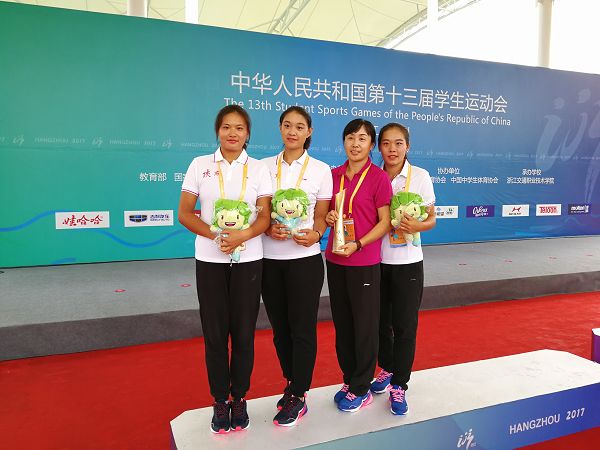 第十三届全国学生运动会9月5日至13日在杭州举行,由我校网球高水平队6名队员和西安建筑科技大学网球队4名队员组成的陕西省学生网球队,在我校网球高水平队主教练陈艳带领下参加了比赛。队员们分别参加了团体和单项共七个项目的角逐,最终我校选手获得女子团体第六名、男子双打第五名,女子双打第八名。