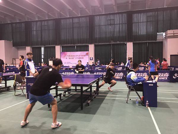 本次比赛由陕西省教育厅主办,来自全省43所兄弟院校参加了比赛。由于赛制的改革,五对五对抗对于每个学校来说都没有绝对优势可言。小组赛都异常紧张激烈,我们以小组第一的身份进入到第二阶段的淘汰赛,我们以3比1的比分战胜西北工业大学,在半决赛中遇到西安科技大学,队员们发挥出了自己的水平和风格,但由于关键球的处理上还存在心理波动,最终2比3不敌对手。在单项比赛中混合双打李世杰、梁宇昕获得第五名。