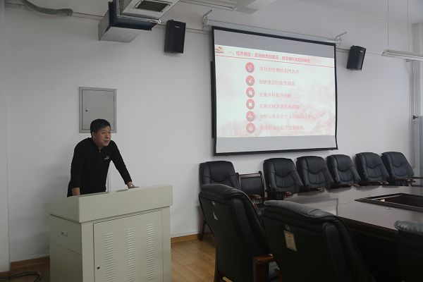 会上,部党总支委员、主任吴继东领学了十九大报告第五至第十二部分部分。为了提高学习效果,他把这八个部分的内容凝炼为经济建设、政治建设、文化建设、社会建设、生态建设、国防和军队建设、“一国两制”、祖国统一和大国外交,并对这八个方面所包括的具体内涵进行了详细解读。特别指出经济建设是基础,政治建设保障,要维护“一国两制”、实现祖国统一必须加强国防和军队建设,同时必须加大环境治理,强化文化建设和社会建设,为实现中华民族伟大复兴的中国梦奠定基础。