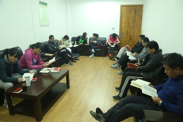 11月29日上午,体育部各党支部召开党员大会,集体学习十九大修改后的《中国共产党章程》,第一党支部书记杜养军和第二党支部书记王鲜分别主持两个支部的学习会。部领导班子成员以普通党员的身份参加所在支部的学习。