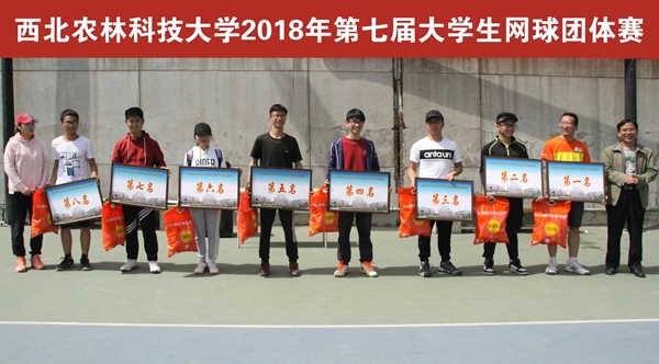 3月31日至4月1日,我校2018年(第七届)大学生网球团体赛在北校区网球场举行。经过2天的激烈角逐,最终植保学院获得第一名,风景园林学院获得第二名,林学学院获得第三名,获得第四至八名的分别是:经经济管理学院、动物科技学院、信息工程学院、资源环境学院、机械与电子工程学院。创新学院、化学与药学院、资源环境学院、机械与电子工程学院获得体育道德风尚奖。