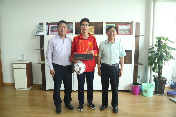 近期,体育部主任吴继东、党总支书记魏景刚为李津源同学颁发了破校运会纪录荣誉证书及奖品,农学院党委副书记张海成、体育部副主任任启俊参加了颁奖仪式。