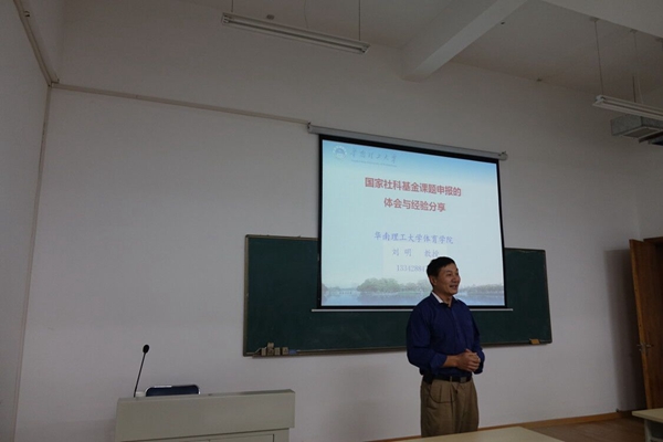应体育部邀请,5月11日下午,华南理工大学体育教学团队首席教授刘明在小球馆报告厅为全体教师作了有关国家社科基金项目介绍和如何发表高水平的体育研究论文的报告。