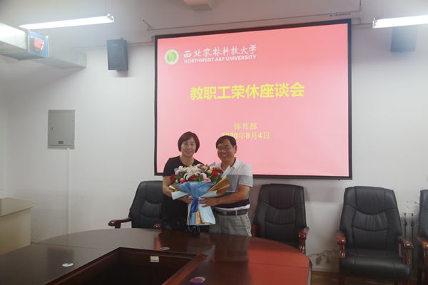 体育部副主任陈艳为魏景刚同志献花,体育部主任孙军和党总支副书记王生毅颁发荣休证书和赠送纪念品。最后与会人员合影留念。