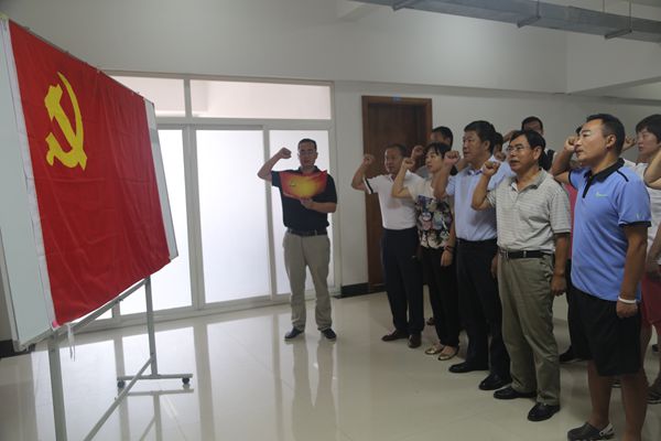 活动的第二项内容,是面向党旗宣誓,重温入党誓词。在部党总支委员任启俊的带领下,全体党员面向鲜艳的党旗,举起拳头,庄严宣誓,表达对党的忠诚。