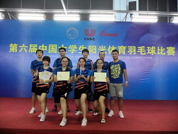8月4日至7日,第六届中国大学生阳光体育羽毛球比赛在浙江桐乡市举行。我校运动员经过四天的激烈拼搏,最终收获女子单打第五名,女子团体第八名的好成绩。体育部教师耿强荣获优秀教练员称号,队员冯宇聪、何莹松荣获优秀运动员称号。同时,我校还荣获体育道德风尚奖。