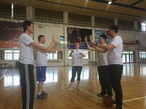 5月15日下午,他们又录制了课程组第九次课件:篮球裁判员手势和篮球投篮技术动作。拍摄前,课程组进行了拍摄内容、取景讨论,最终确定分两个场景拍摄内容。其中,一部分为室内场地为篮球裁判员报号手势和犯规后报告判罚程序,对于一、二年级经常打篮球的同学建立篮球规范有良好的示范作用;另一部分为室外场地为篮球投篮技术动作,其拍摄更是精益求精,从持球到发力顺序,教师的动作示范一丝不苟,讲解专业规范。拍摄最后,体育部吴继东主任来到了拍摄场地,饶有兴致的为居家的学子们献上了寄语:练身体,齐抗疫!