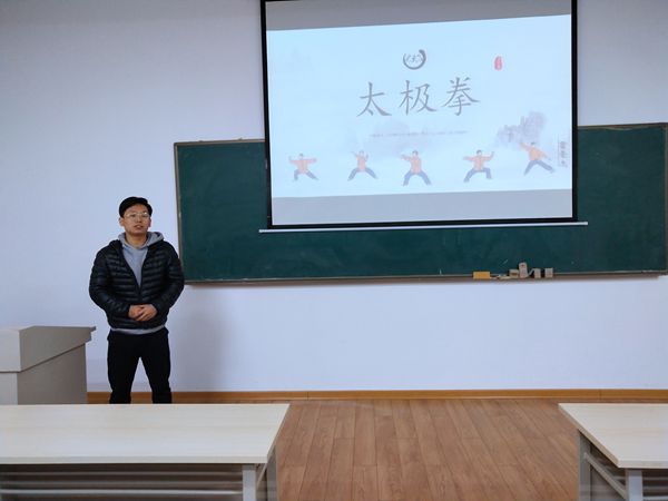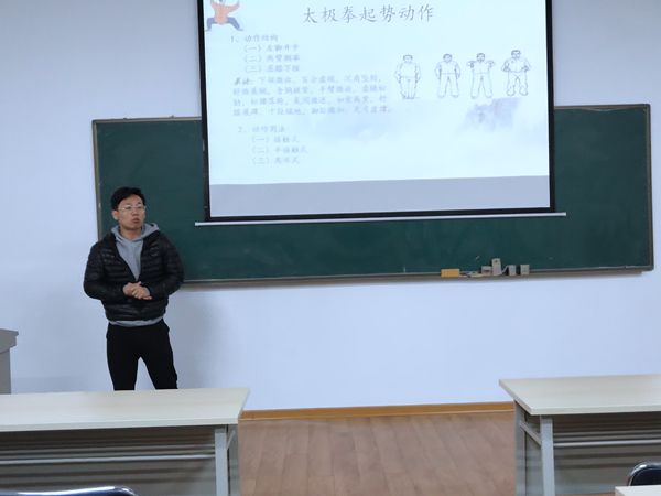 新进青年教师霍豪杰讲解的内容为武术套路中的24式太极拳的起势动作,他首先简要介绍太极拳的定义和属性,从动作结构入手,分解起势的具体动作要领和动作内涵,详细介绍了起势的具体用法,加上现场演示,让人耳目一新,引人入胜。