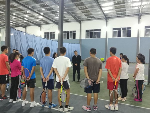 吴继东从我校发展现状,网球高水平队师资力量、场地设施、运动成绩等方面向三所中学负责人、教练员、即将毕业的网球高水平运动员进行宣讲。同时,也希望运动员努力学习、刻苦训练,圆自己的大学梦。