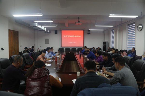 1月4日上午体育部在小球馆三楼会议室召开相当于二级教代会的2018年度教职工大会,部领导班子成员、教职工50余人参加了会议。