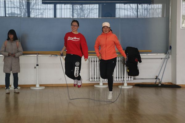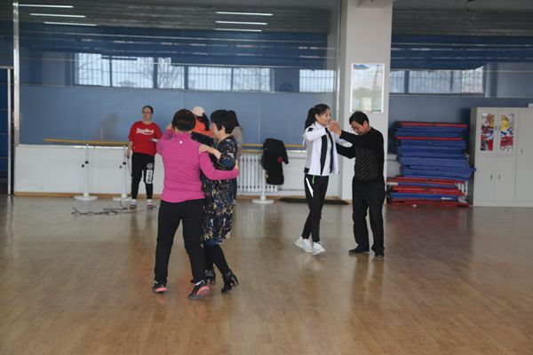 第一场活动是联谊舞会。3月8日下午,北校区小球馆健美操教室响起了舞曲,场地上一对对舞伴随着乐曲翩翩起舞。有些人的舞步还略显生疏,熟练者则耐心指导,每个人的脸上都充满了兴奋的神情,现场还有些女教工跳起了绳。男教工的加入,更是活跃了现场的氛围,场上不时发出开心的笑声。