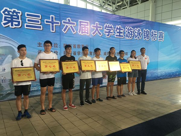 6月10-11日,第三十六届陕西省大学生游泳锦标赛在咸阳职业技术学院举行。我校代表队共派出15名运动员参加了高校甲组游泳比赛。经过两天激烈的角逐,荣获冠军5项、亚军7项、季军8项,以139分的总成绩获得甲组男子团体总分第一名,连续六年蝉联该项赛事甲组男团总分冠军。同时,我校代表队主教练郝国防老师被评为优秀教练员,队员马杰、薄沁箐两位同学被评为优秀运动员。