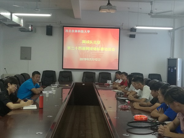 7月12日,体育部在小球馆会议室召开了网球队参加第二十四届全国大学生网球锦标赛总决赛动员会。出席会议的有体育部主任吴继东,体育部副主任、网球高水平运动队主教练陈艳,体育部教师王利民及全体参加比赛的运动员。会议由陈艳教授主持。