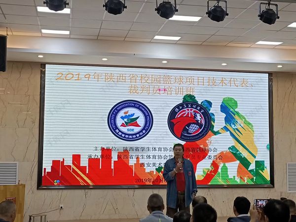 为提高业务能力和思想道德水平,更好完成校园篮球项目比赛执裁任务,陕西省学生体育协会、陕西省篮球协会于2019年10月6日-7日在西安体育学院举办“2019年陕西省校园篮球项目技术代表、裁判员培训班”,中国篮球协会副主席、陕西省篮球协会主席王立彬,贺京周出席,我校体育部丁洪江副教授参加了培训。