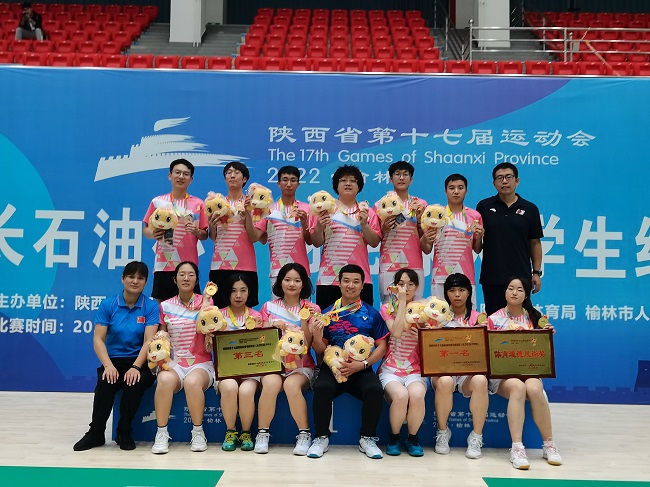 在8月3日刚刚闭幕的陕西省第十七届运动会“延长石油杯”大学生组羽毛球比赛中,我校代表队荣获大学生甲组女子团体冠军,男子团体季军。