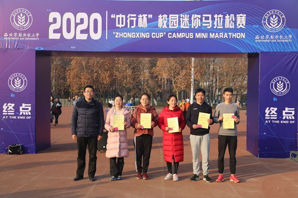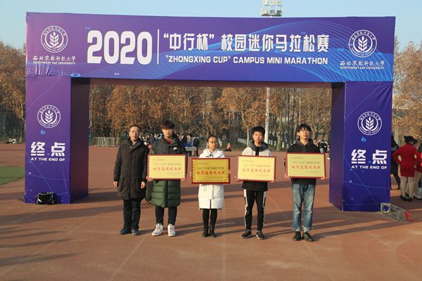 颁奖仪式上,校党委副书记闫祖书及体育部领导为获奖单位及个人颁奖。资环学院、水建学院、经管学院、机电学院、林学院、食品学院、生命学院、化药学院获得男女团体前八名,水建学院、资环学院、机电学院、林学院、经管学院、食品学院、动医学院、生命学院获得男子团体前八名,人文学院、资环学院、食品学院、生命学院、经管学院、化药学院、农学院、水建学院获得女子前八名;园艺学院陈敏同学获得男子组第一名,农学院高雪纯获得女子组第一名;理学院杜光源获得教工男子组第一名;机关张海芬获得教工女子组第一名;理学院、水保所、信工学院、动医学院、草业学院、风园学院获得优秀组织奖,动科学院、园艺学院、植保学院、农学院获得体育道德风尚奖。