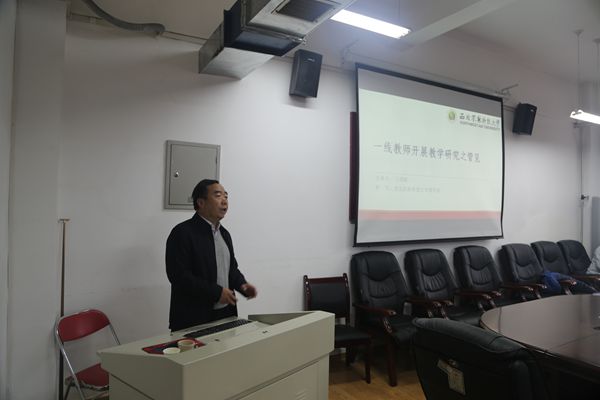 4月7日上午,体育部邀请陕西省教学名师、理学院王国栋教授为全体教师做《一线教师开展教学研究之管见》专题报告。报告会由体育部副主任任启俊主持。