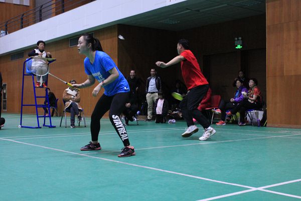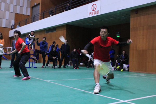 在小组赛中,我部代表队一路过关斩将,以小组第一的优异成绩杀进决赛。决赛中体育部代表队对阵实力强劲动物医学院代表队,整场比赛比分跌宕起伏,精彩纷呈。决赛第一场男子双打,由黄金搭档祝东和郭磊出场,两位老师经过激烈的拼杀,虽不敌对手,但充分展现出了永不言弃的体育精神。第二场男女混合双打,常辉和施俊香两位老师上场前充分交流,现场指导战术要领奋勇拼搏,以2-0拿下本场,将大比分变为1-1。第三场女子双打,牟红侠和唐表两位老师技高一筹,充分应用灵活多变的战略战术,以2-0轻取对手,第四场为男女混合双打,由王斌和小将张蓉婧出场,虽然实力不及对手,但在场上敢打敢拼的精神,赢得了场下观众的喝彩,至此前四场比赛大比分为2-2。比赛迎来了激动人心的男子双打决胜场,由头号种子选手耿强和郝国防迎战强劲对手陈树林和林青,两位队员发挥稳定,全神贯注、沉着冷静、奋力拼搏,随着一记漂亮的扣杀,战胜了对手,为体育部锁定了胜局。