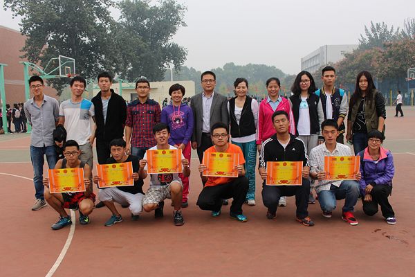 学院党委副书记汪勇攀、体育辅导员孟月婷、李永华;辅导员屈婉婷亲临赛场上观看此次篮球决赛并为获奖班级颁奖。赛场上,队员们强健的体魄和精湛的球技使比赛一开始就进入白热化阶段,双方势均力敌,既有默契的配合又有激烈的抢断。女篮也不甘示弱,精准的投篮赢得观众们的阵阵喝彩。最后,学院领导为脱颖而出的四个班级进行颁奖合影。至此,2014级新生篮球赛完美收官。
