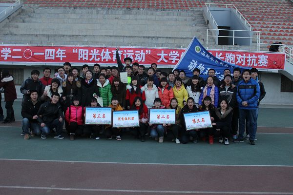12月16日下午,我校2014年“阳光体育运动”冬季长跑对抗赛在北校田径场圆满落幕。我院30名同学参加了此次比赛,期间,学院党委书记赵延安、全体专兼职辅导员及团学干部到场为参赛队员加油助威。
