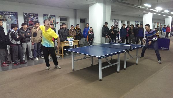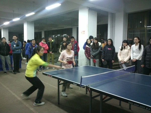 下午四点半,比赛正式打响,我院女队的对手是食品学院,第一局我院由梧永凤同学顺利拿下,但是后边对手调整了策略直落三局赢得胜利。晚上的男子比赛打得十分激烈,前四局战成2:2平后进行了最后一局决胜盘的比赛,我院选手张伟博与对手前两盘战成1:1平,在决胜盘中以12:14惜败对手。女队面对实力强进的经管学院无奈吞下失败的苦果。