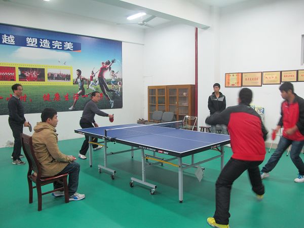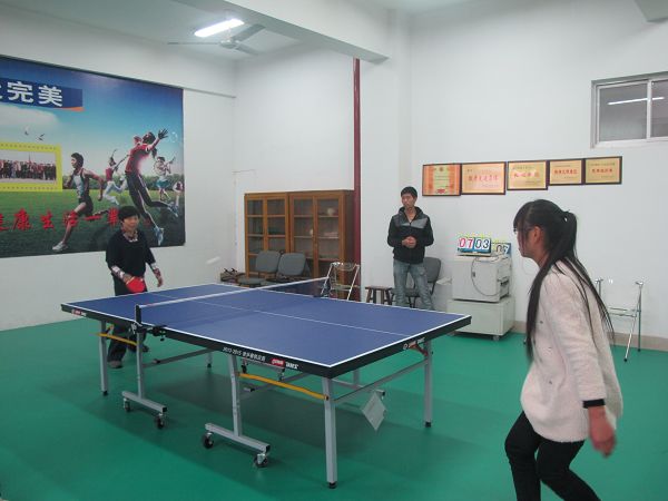 本次共有近一百名学生踊跃报名参加。比赛采用三局两胜制,共分三个阶段:初赛、复赛和决赛。所有参赛人员在活动中秉承"友谊第一,比赛第二"的原则各尽风采。经过初赛和复赛的激烈角逐,共有八名同学进入决赛。决赛于本月9日下午3时在三号教学楼302活动室进行。活动伊始由谢书记做精彩发言,在介绍完教师组和学生组参赛选手后正式开始。决赛共分男女混合双打,男子单打,女子双打,男子双打和女子单打五个部分进行。教师组宝刀不老,稳扎稳打。学生组初生牛犊不怕虎,毫不示弱。双方你削我扣,你追我赶。比赛高潮迭起,一个个精彩的杀球引来阵阵叫好声和掌声。经过近两个小时的角逐,教师组摘得本次乒乓球赛的桂冠。
