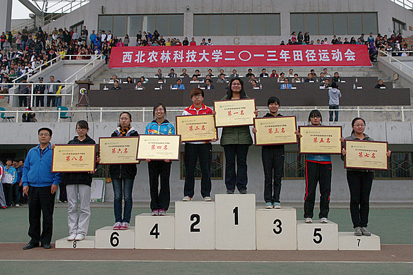 本届校运会上,我院运动员在优势项目上继续发扬,在劣势项目上也不落人后。在激烈角逐的女子100米比赛中,有“食品女飞人”美誉的屈婉婷同学旗开得胜,技压群芳,摘得本次校运会首金,为食品学院争得第一份荣誉。此外,屈婉婷在常胜项目女子组400米栏比赛中毫无悬念地夺得了金牌。女子4*100以及女子4*400米项目在屈婉婷等同学的带领下也取得第一名的佳绩。祁蕾在女子跳远比赛中成功卫冕。后起之秀刑占在男子200和100米比赛中分别摘得金牌和银牌。所有的奖牌都凝聚了运动员的汗水和努力,他们是赛场上的王者,他们是我们心中永远的英雄。