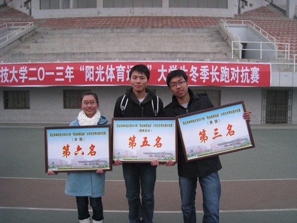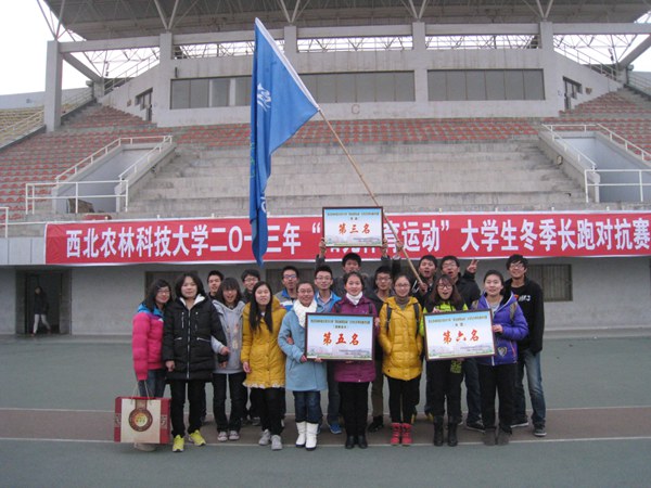 2013年12月15日--17日三天,西北农林科技大学举办了以“阳光体育运动”为主题的大学生冬季长跑对抗赛。越野赛是学校多年延续下来的惯例,旨在提升学生身体素质,增强学生意志,丰富学生的课余文化生活,展现大学生的青春精神风貌。动医学院经过三天激烈的角逐,获得团体总分第五名、男子组第三名、女子组第六名的好成绩。并且女子组许清慧再次获得全校第一名。