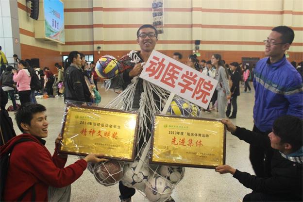 运动员们毫无疑问在运动场上以主角身份面世。长跑运动员们以坚强的意志力和持久的耐力将漫长的跑道征服;短跑运动员们以强大的爆发力和良好的心理素质胜出于终点;跳高跳远运动员们亦无畏掉落在充满雨水的垫子和沙土中,奋力跳跃;趣味项目的选手们也在配合中投入精力和信心……当然,观众席上那一把把五彩雨伞连成的壮观景象更成为了此次运动会的一大亮点。最后,在全体师生雨中奋斗下,我院获得了“2013年度‘阳光体育奖’先进集体”及“2014年田径运动会学生精神文明奖”,这无疑是属于动医的荣耀。