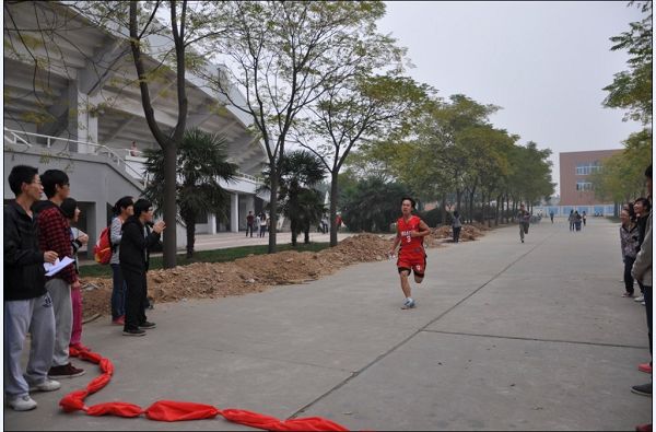 经过军训的锻炼和两个月的辛苦备战,同学们们终于站在了越野赛比赛场地的起跑线上,积蓄力量,洋溢青春,整装待发。一声令响,同学们冲出了起跑线,各班的志愿者分布在赛道旁,为运动员们加油呐喊,指挥路线。女子5000米,男子8000米,同学们们咬紧牙关,一路奋力向前! 同学们强健的步伐和不言放弃的拼搏精神形成了一道亮丽的风景线,寒冷的天气阻挡不了大家似火的激情,现场气氛异常热烈。在两个供水点处,辛劳的志愿者们准备好温水,以供运动员们及时补充水分。本次比赛中,每个人都坚持着跑到了终点,充分显示出大一新生的蓬勃朝气与顽强毅力。